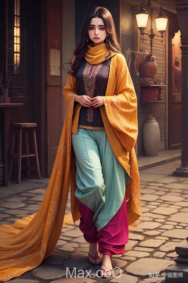 11、印度少女Shalwar kameez,loose trousers called shalwar, long shirt called kameez, scarf called dupatta, varied in colors and patterns