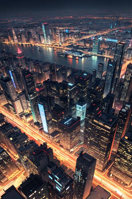 masterpiece, best quality, no humans, outdoors, night, from above, cityscape, cyberpunk,