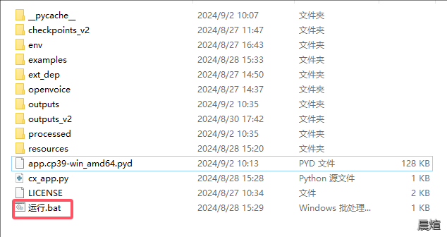 2、软件解压出来的文件夹里有”运行.bat“,双击即可启动软件。(注意:软件所在路径中不能有空格或者中文字符)